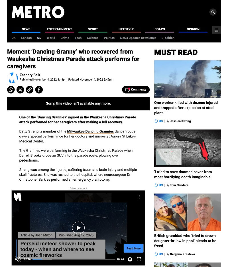 One year after the Waukesha Christmas Parade tragedy, Dancing Granny, Betty Streng dances again.